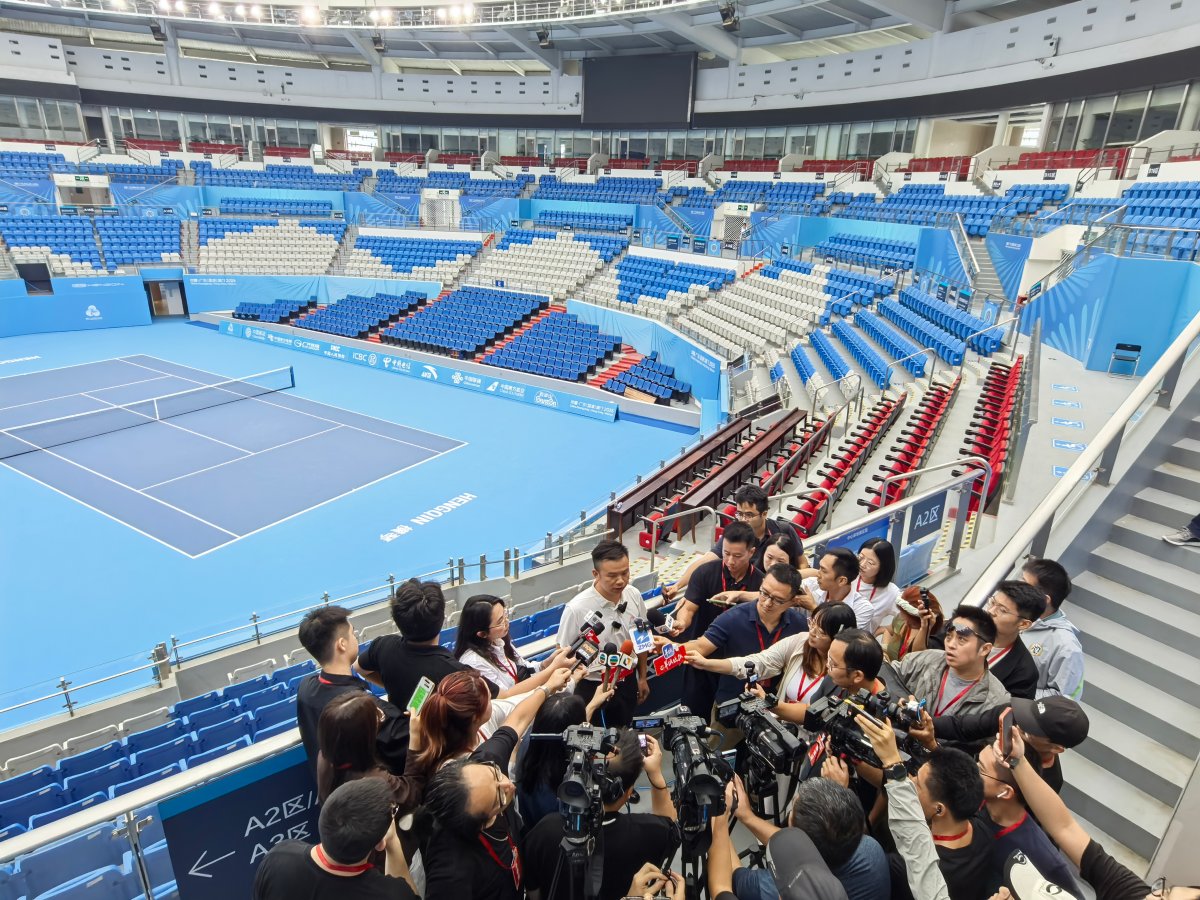 场地本身的“底色”更是精益求精。本次比赛场地需经过四道专业涂层工序,每一层都影响着球的弹跳与速度。采访团中的一位网球爱好者点出了其中的奥妙:“今年的球速可能会比去年慢一点,这样的适中选择是为了让回合球更多,可以提升观众的观赛体验。”