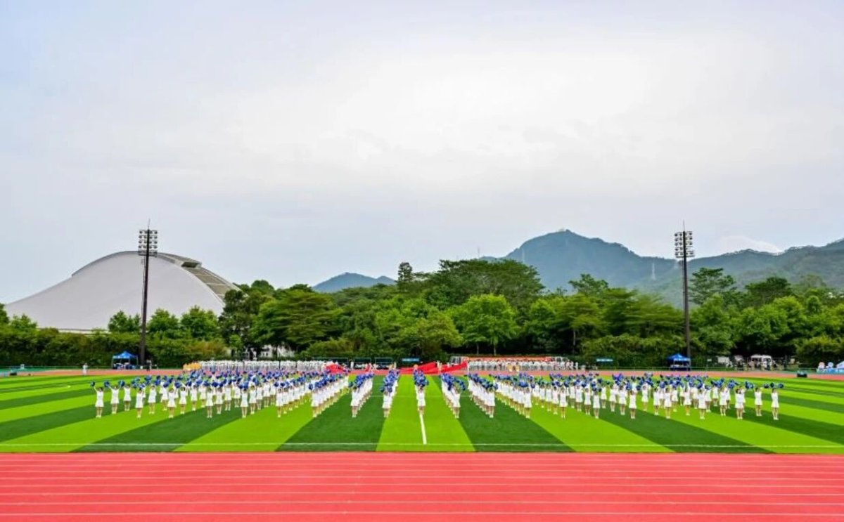 北师大珠海校区获奖作品选自2025年校区运动会开幕式大型团体操《南国北师谱华章》片段。该表演由416名学生共同完成,其中,弘文书院、会同书院、乐育书院、砺行书院的390名非体育专业本科生构成展演主体,未来教育学院体育专业学生则负责高难度技巧动作部分。
