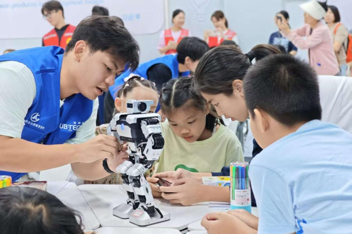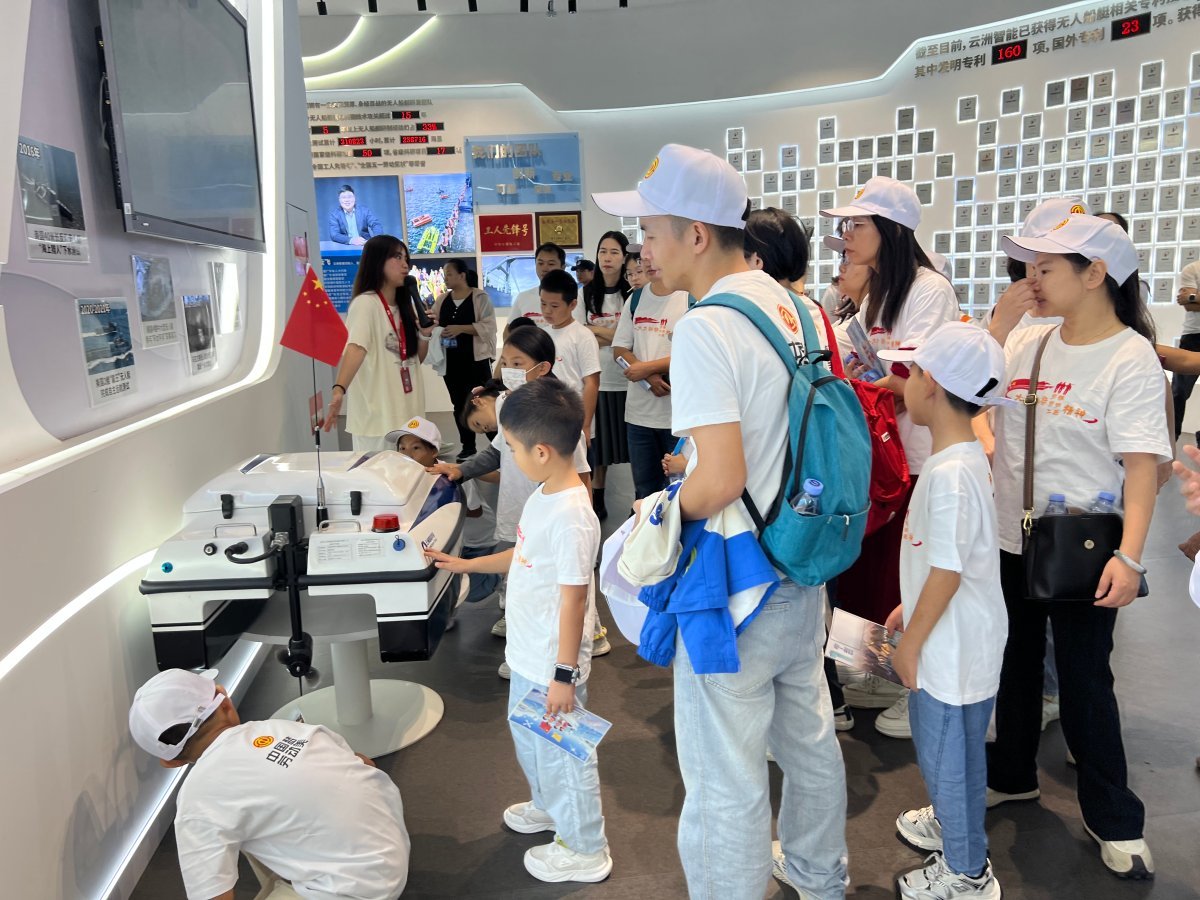 孩子们在家长陪伴下,认真聆听科技港的命名由来,并参观无人船科普展厅。展厅内陈列的各类无人船模型及技术介绍,让孩子们对无人船技术有了初步认识,眼中满是好奇与惊叹。