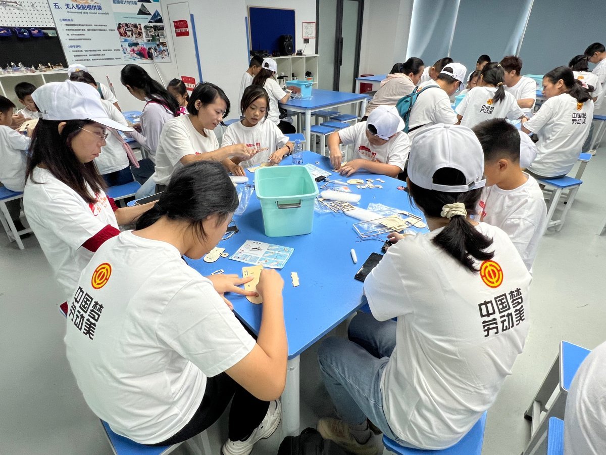 活动还设置了航海通信技术课程与无人船船模拼装环节。在专业老师指导下,亲子共同学习船舶发展史与轮船原理,拓宽知识视野。拼装船模时,孩子们动手动脑,与家长协作完成从零件到成型的制作过程,智慧与汗水凝结为一艘艘精美船模,孩子们脸上写满成就感。
