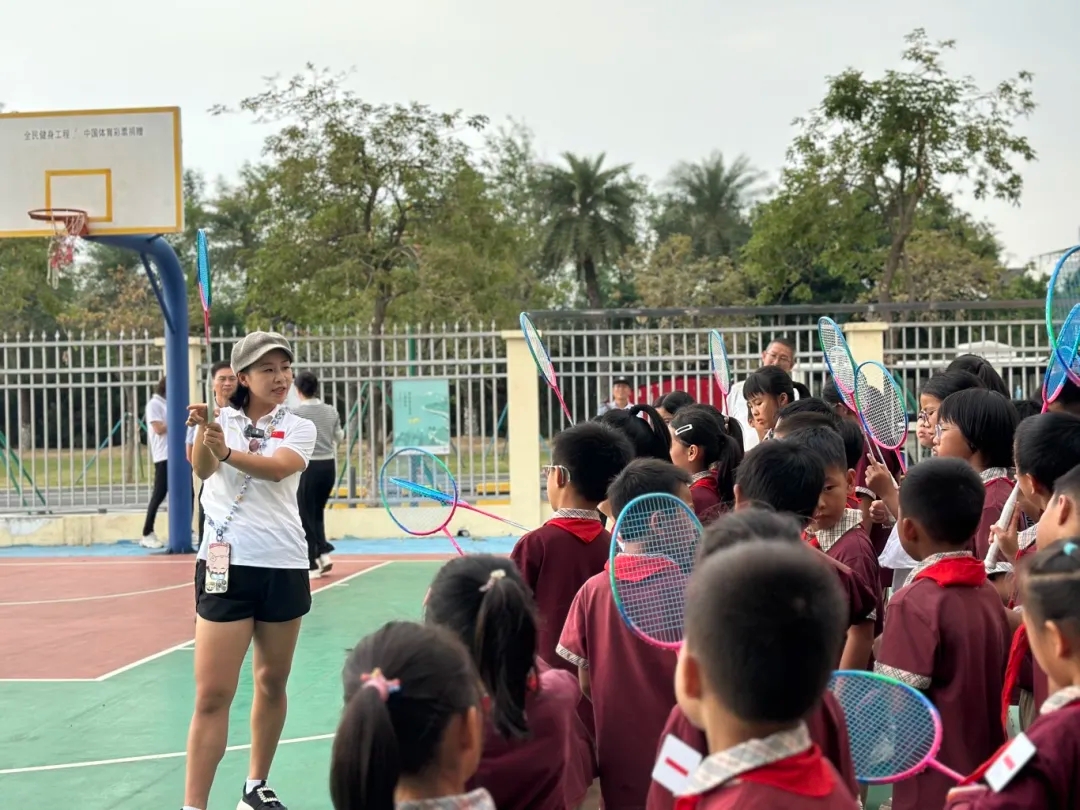 近日,羽毛球世界冠军马晋来到珠海桂山岛桂山小学,开展"同心助全运'羽'你共成长"公益教学活动,与60余名学生面对面交流,分享运动经历并指导羽毛球技巧。