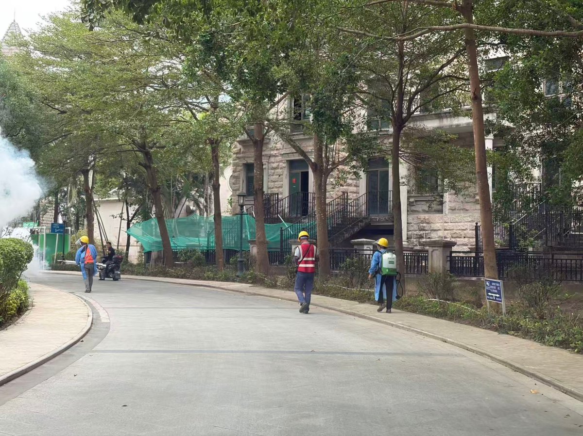 在工程治理方面,三灶镇在十五运会接待酒店、赛事场所周边及其他存在积水隐患的老旧小区,对暴露雨水箅子加装防蚊闸,总面积达1000平方米,从市政排水系统层面阻断蚊虫繁殖途径。此外,自10月30日起,三灶镇对全镇9个村居开展2轮全覆盖消杀,涵盖主次干道、绿化带、下水道等公共区域,并根据疫情风险图对重点区域实施精准强化处理。