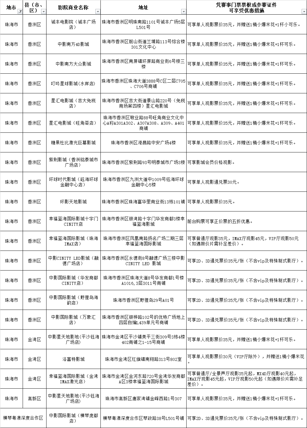 为营造全民迎全运的浓厚氛围,并借此机遇进一步激发电影消费活力,结合“中国电影消费年”有关部署要求,珠海推出文体联动观影福利,11月1日至12月31日,观众和运动员凭十五运会和残特奥会赛事门票票根或参赛证件,可在珠海与横琴粤澳深度合作区共21家指定影院享受观影购票优惠或增值服务,进一步促进体育文化消费,助力电影票房增长。