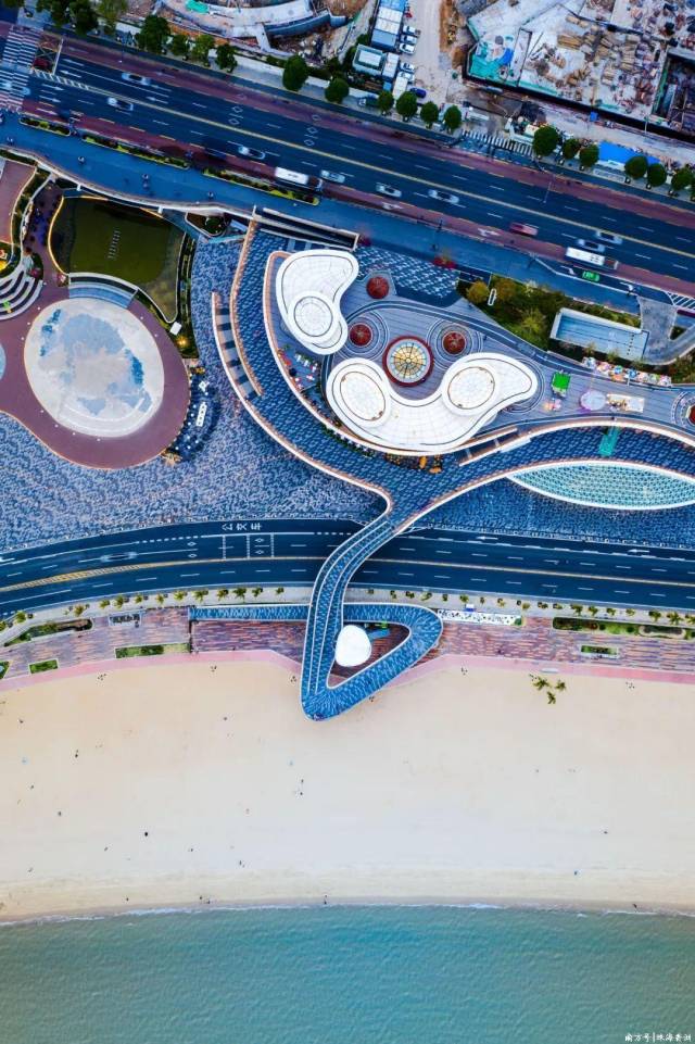 蓝海豚岛,总面积约10万平方米,整体采用“蚝贝”造型