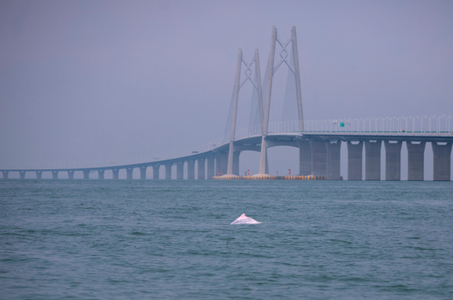 一边是现代化的港珠澳大桥横跨波光粼粼的大海