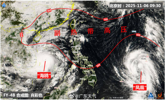 据@广东天气消息,今天(11月6日),从卫星云图可见,海上有两个台风活动,分别为今年第25号台风“海鸥”和第26号台风“凤凰”。