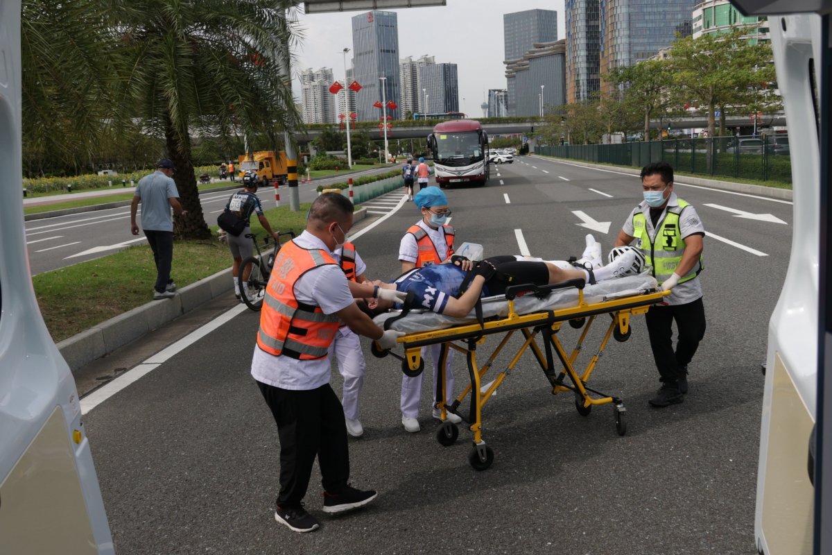 在珠海与横琴赛段,构建起多层次、立体化的医疗保障体系。赛道内,珠港澳分别安排1名医疗指挥员、1名医生乘坐联合指挥车和随行医生车,全程负责协调、报告、指挥调度、快速处置等工作,安排3辆随行救护车尾随队伍负责伤病员快速转运。赛道外围,设置4个现场医疗站、13个后备增援组、8条急救通道和7家定点医院,快速到场增援和大批量伤病员调度转运,并为伤病员开通绿色就医通道。针对封控小区路段,前置5辆救护车,满足封控小区居民的院前急救需求。