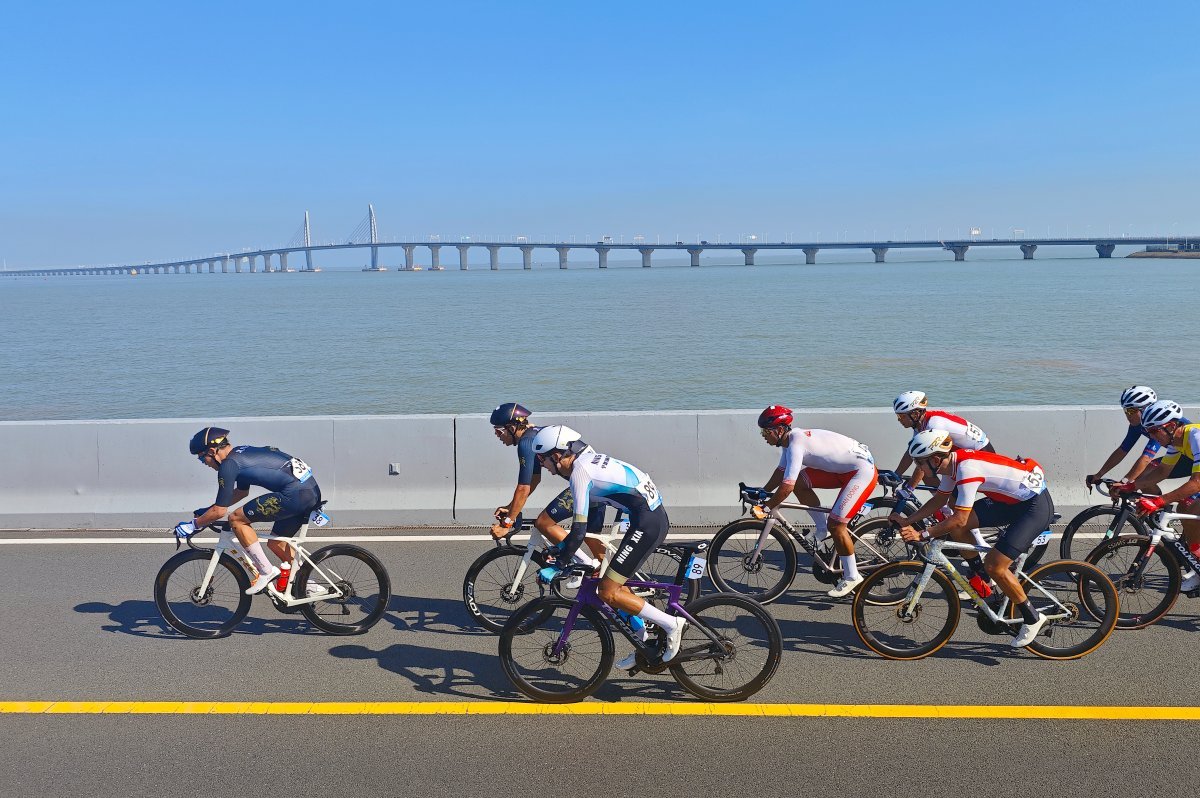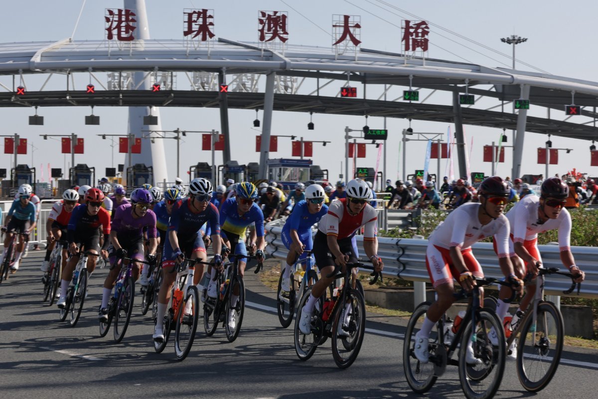 比赛从一开始就竞争激烈。运动员首先进入港珠澳大桥人工岛,随后以“无感通关”的方式驶入澳门赛段,经过澳门大桥时,两旁的珠澳风光尽收眼底。