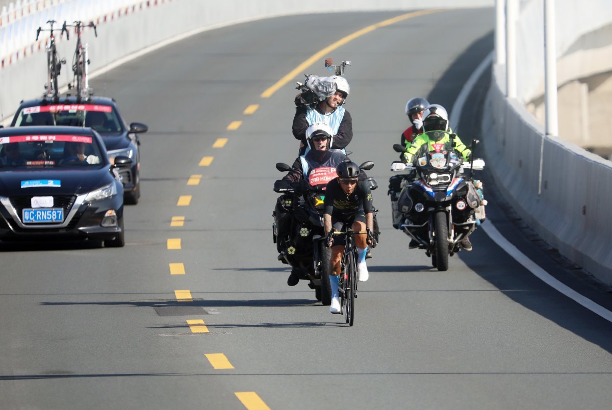 11时30分,此时领先集团分别为黑龙江队的曲城君、山东队的郑现彤与天津队的高祥泰。选手们从港珠澳大桥下桥后,进入加林山隧道,朝横琴粤澳深度合作区驶去。