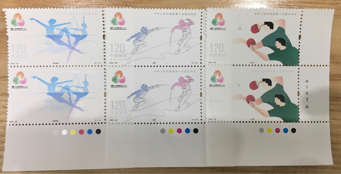延续1959年首届全运会以来,每届赛事都发行纪念邮票的传统,中国邮政发行的《中华人民共和国第十五届运动会》纪念邮票为一套3枚,邮票图案名称为:花样游泳、击剑、乒乓球。全套邮票面值3.60元,计划发行数量为套票500万套,版式二69.3万版。