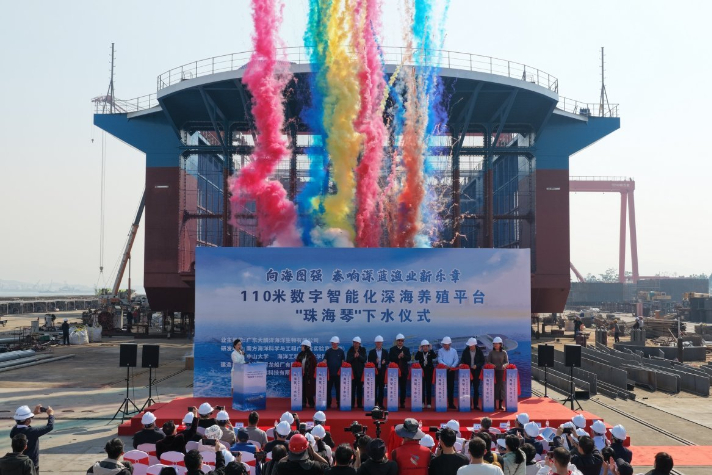 由南方海洋实验室联合中山大学海洋工程与技术学院自主研发的国内首台配备可自主升降折叠网箱的新型数字智能化深海养殖平台“珠海琴”已完成整体建造,今年12月将在珠海大小蜘洲岛海域落地运行。该平台解决了传统网箱在恶劣海况下生存能力差、管理效率低的痛点,具备台风防御能力强、建造成本低等优势,堪称一艘海洋养殖的“智慧航母”。