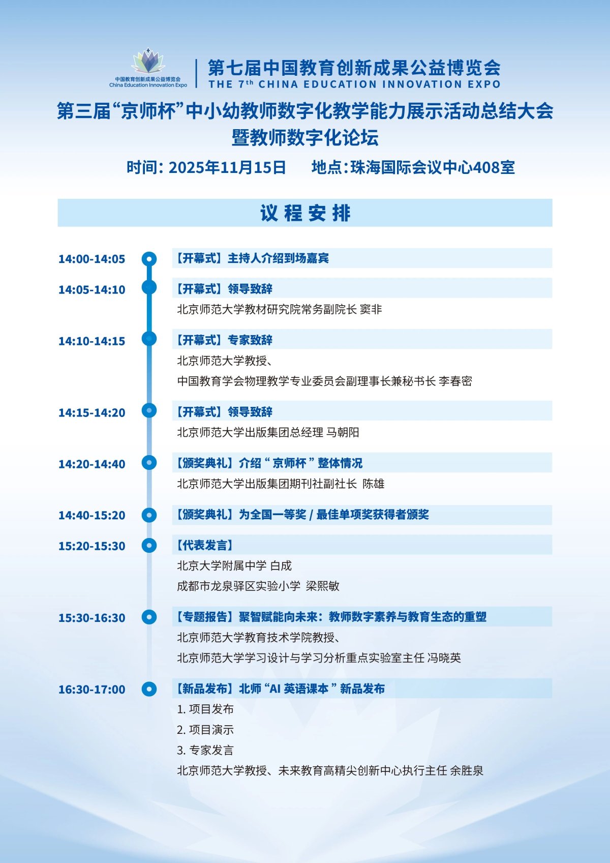今天,为您送上第七届教博会各论坛的详细日程海报第二弹!