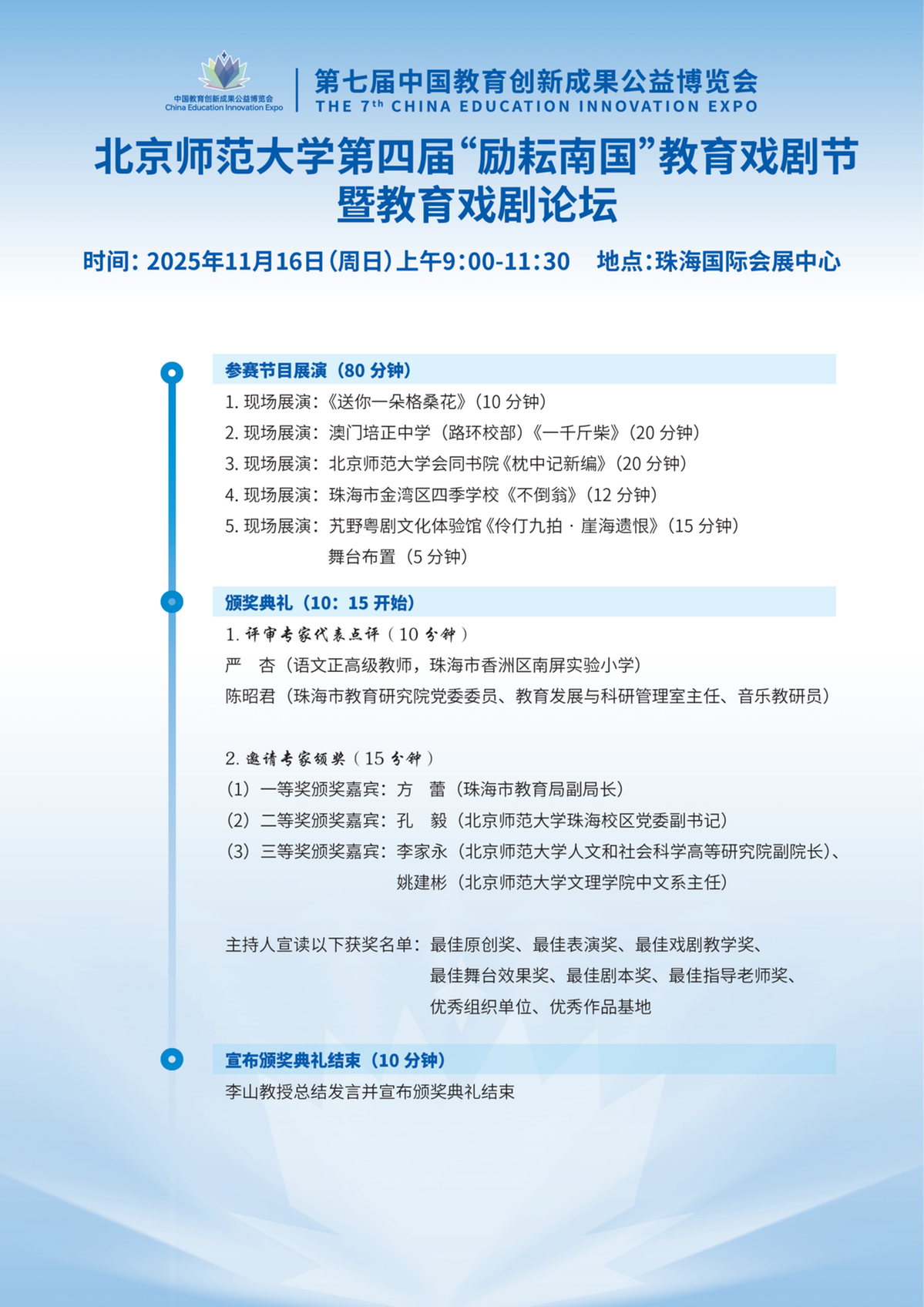 第七届中国教育创新成果公益博览会即将于11月15日至17日在珠海国际会展中心举行。本届教博会展览面积突破3万平方米,近2000家单位参展,并设置50余场主题论坛及超千场工作坊,全方位展现中国教育创新的蓬勃力量。