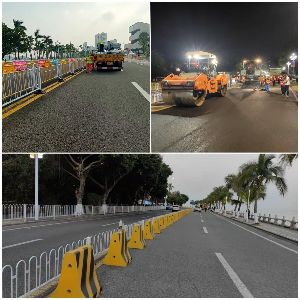 围绕赛事需求,重点对情侣路等关键路段实施改造提升,累计完成约3000平方米路面翻新,更换各类护栏近7000米,迁移石墩680个。同时全面开展赛道沿线设施维护及沿线灯杆翻新,修复沥青路面、地砖6000余平方米,维修城市家具269处,翻新沿线灯杆317杆,专项完成场馆区域高杆灯修复,处置各类电缆和设备故障53宗。