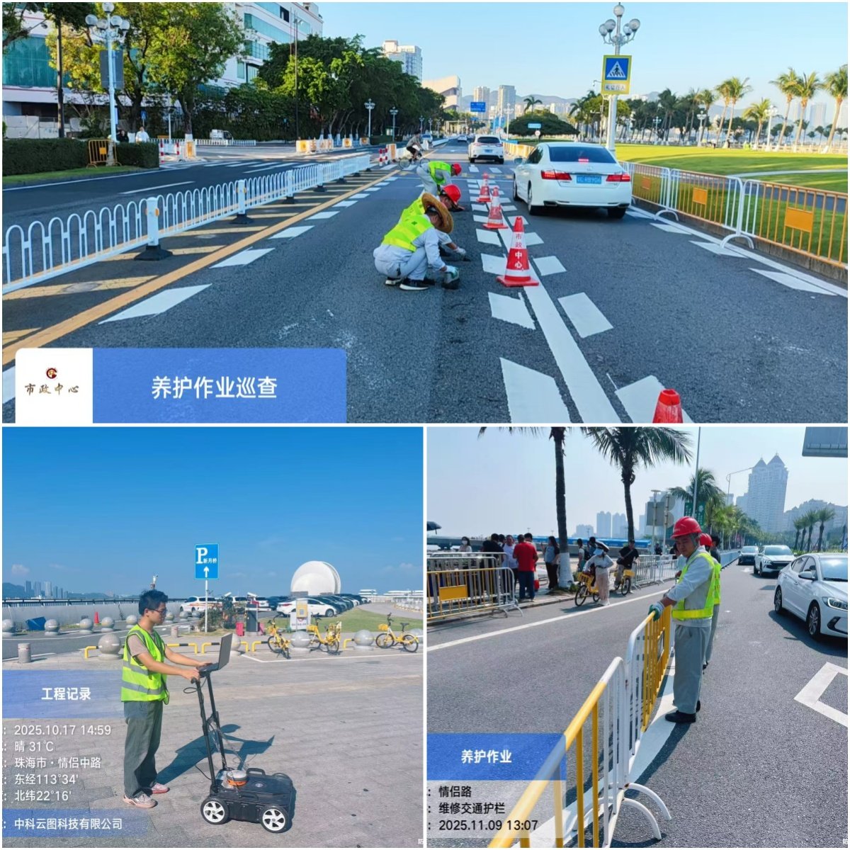 组织专项力量对赛道及周边区域设施进行全面动态巡查,累计投入养护人员252人次,作业车辆75车次。赛事期间重点加强情侣路沿线护栏、人行道等设施检查,发现并应急处置各类问题34处,确保赛事安全顺畅进行。