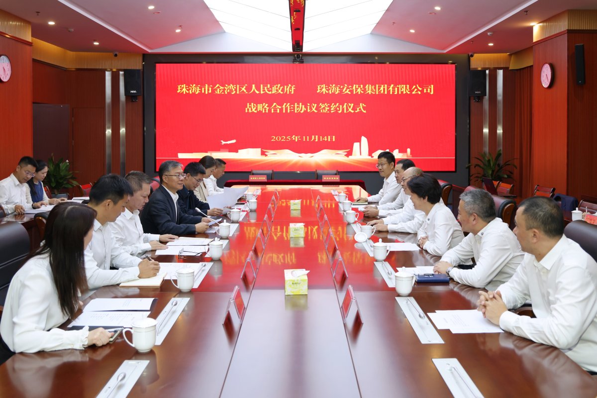 11月14日,金湾区人民政府与珠海安保集团有限公司签订战略合作协议,今后双方将整合优势资源,围绕党建共建、基层治理、社会稳定、应急响应、创新场景五大维度深化合作,以政企协同之力筑牢平安金湾建设防线,为区域基层社会治理现代化注入新动能。区委书记梁耀斌主持仪式并讲话。