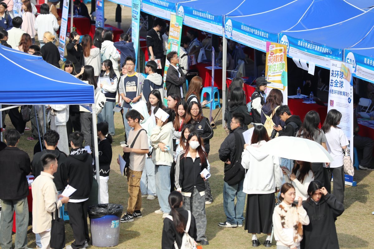 11月14日,“百万英才汇南粤”2025年珠海引才高校行——广东科学技术职业学院、珠海艺术职业学院、珠海城市职业技术学院专场招聘活动,在广东科学技术职业学院珠海校区运动场举办,340多家企业携1.5万余个岗位进校园揽才。