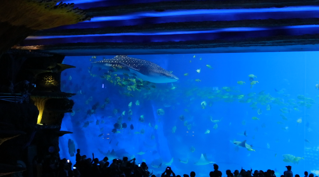 在鲸鲨馆中,孩子们被巨大的鲸鲨、摇曳的水母和缤纷的珊瑚礁生态系统所震撼,他们认真记录海洋生物的特征与习性。
