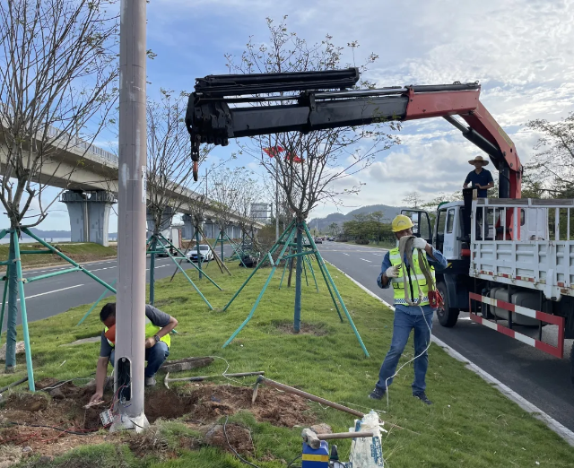 因受台风、暴雨等极端天气频发影响,部分路灯设施服役年限较长、长期受风雨侵蚀及地基沉降出现灯体倾斜、表面锈蚀、连接件松动等现象,不仅影响照明效果,也存在安全风险。