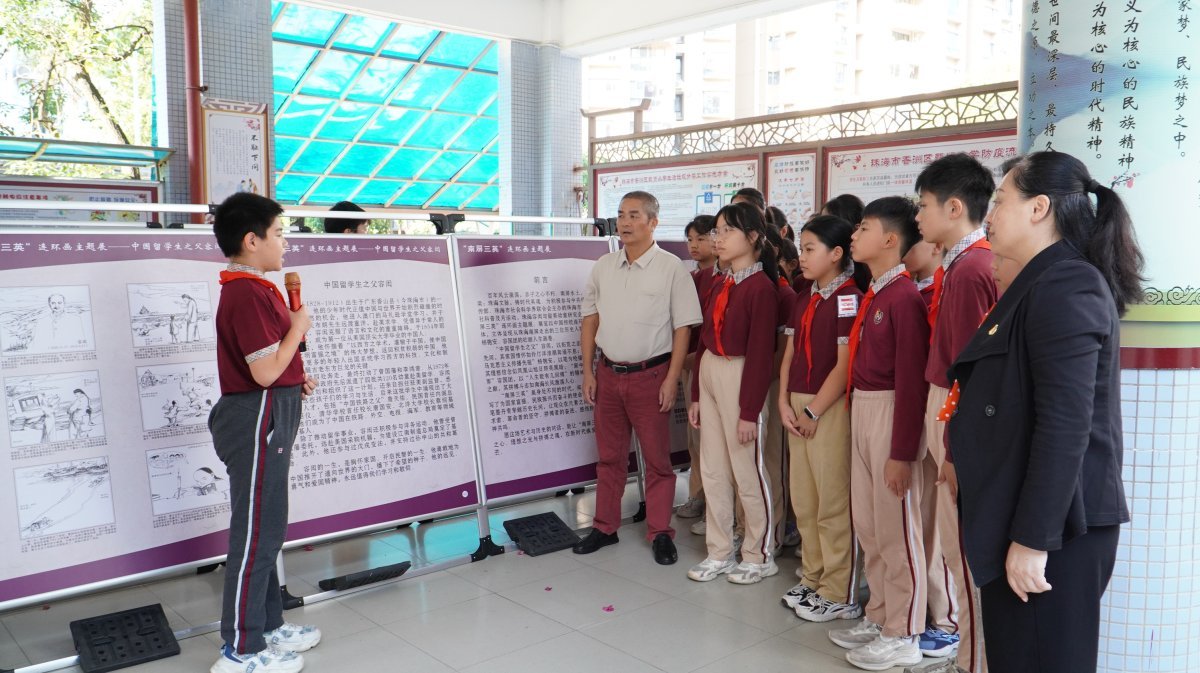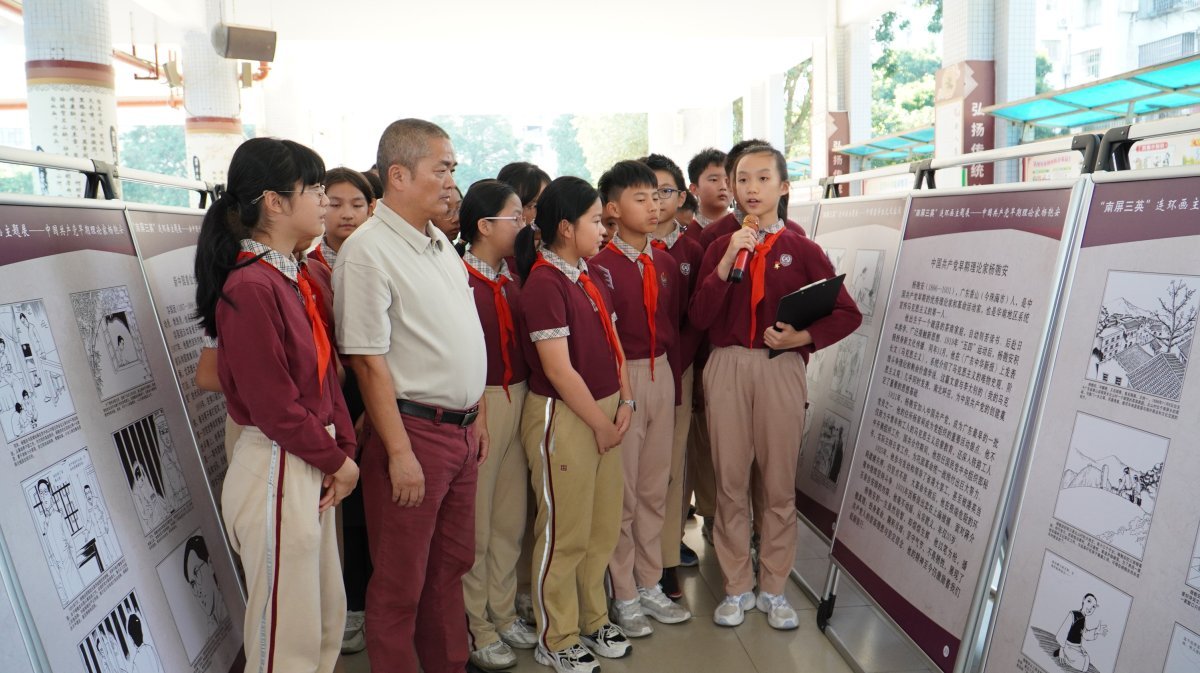 此外,甄贤学校内一场别开生面的主题讲解接力开展。8名学生化身“文化小使者”,围绕“南屏三英”连环画主题展,向来宾流畅讲述先贤故事。据介绍,“南屏三英”除容闳外,还包括传播马克思主义的革命先驱杨匏安、为新中国夺得首个世界冠军的体育名将容国团,三人分别在留学教育、思想启蒙、体育竞技领域树立不朽丰碑,共同构筑起南屏深厚独特的人文底蕴。学子们声情并茂的讲述,将先辈的奋斗历程与家国情怀娓娓道来,现场不时响起阵阵掌声。