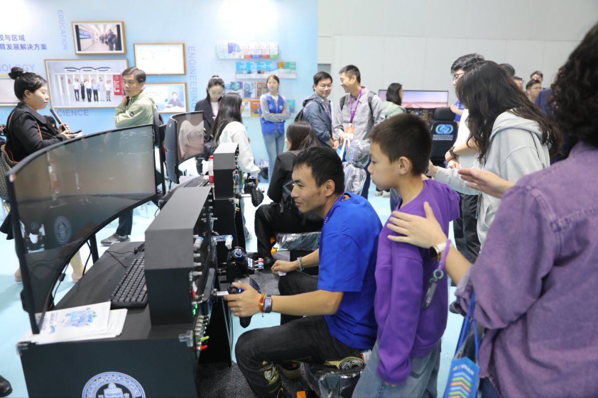 在互动体验上突破,教博会从传统的“观摩场”演变为充满活力的“共创空间”。C919模拟驾驶舱前排起长队,学生们通过亲手操控感受航空科技的魅力;机器人竞技区的精彩展示、故宫主题教育课程的美育浸润、千场工作坊的深度交流,不仅增强了参与感,更催生了众多新的合作项目。