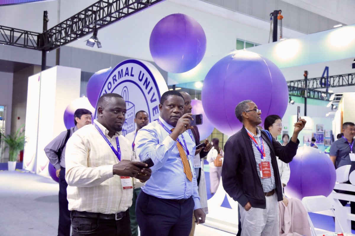 由“中非教师教育中心”组织的20余名来自非洲多国的中小学校长和教师教育研究者走进教博会,沉浸式了解中国教育创新实践。他们纷纷表达了加强与中国开展教育交流与合作的强烈愿望。一名来自埃塞俄比亚的校长说:“我们从教博会中获得了很多关于如何使用AI辅助教育的信息,我会把这些理念和方法带回我的国家,通过AI帮助学生、培养教师,非常开心能参加这样的培训和探索。”