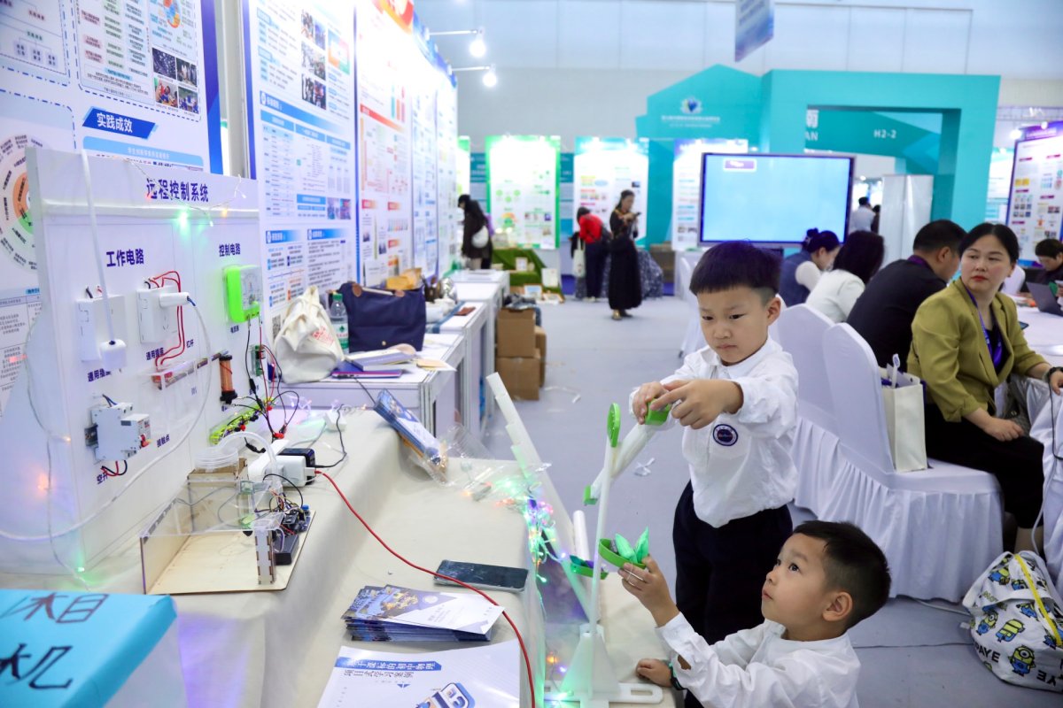 北师大宣城实验学校校长尹玉强分享了学生科创成果:“教博会为学生提供了展示科创成果的高端平台。3名小学生介绍的‘智能安全头盔’和‘智能充电车库’,吸引了中外教育同仁驻足交流。我们将持续推动科学教育生根结果,培育兼具家国情怀与创新能力的时代新人。”