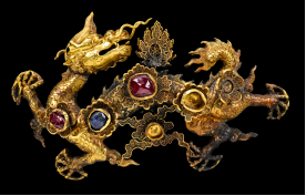 展品中,镶宝嵌玉八仙金花钿、镶宝石王母驾鸾金挑心等代表性文物以细腻的花丝工艺、璀璨的宝石和生动的纹样设计彰显出浓厚的宫廷气息。珠海博物馆展览负责人表示,这批首饰折射出明王朝中晚期手工业的繁荣与文化艺术的灿烂成就,为观众打开了一扇触摸明代社会风貌的窗口。