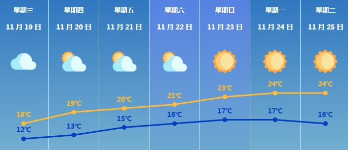 18-19日,各地气温比17日明显下降,粤北市县降温幅度有8-10℃,中南部市县也降了6-8℃,不少地方之前还能穿短袖,现在得直接换上厚外套。降温的同时,还伴随着清劲北风和零星小雨,18-19日全省大部分地方是阴天,雨下得不大,以小雨或零星小雨为主,不会有持续的大雨。