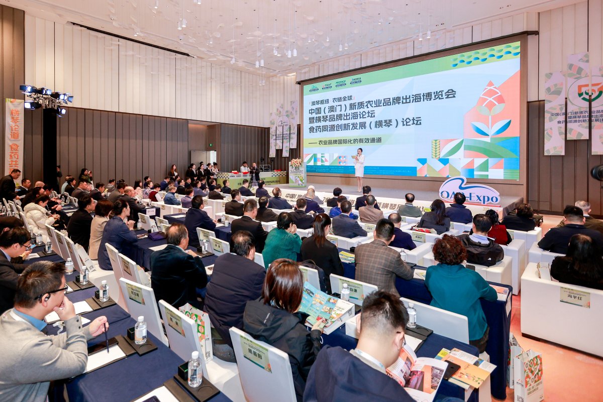 11月19日,首届中国(澳门)新质农业品牌出海博览会暨横琴品牌出海论坛、食药同源创新发展论坛在横琴粤澳深度合作区开幕。