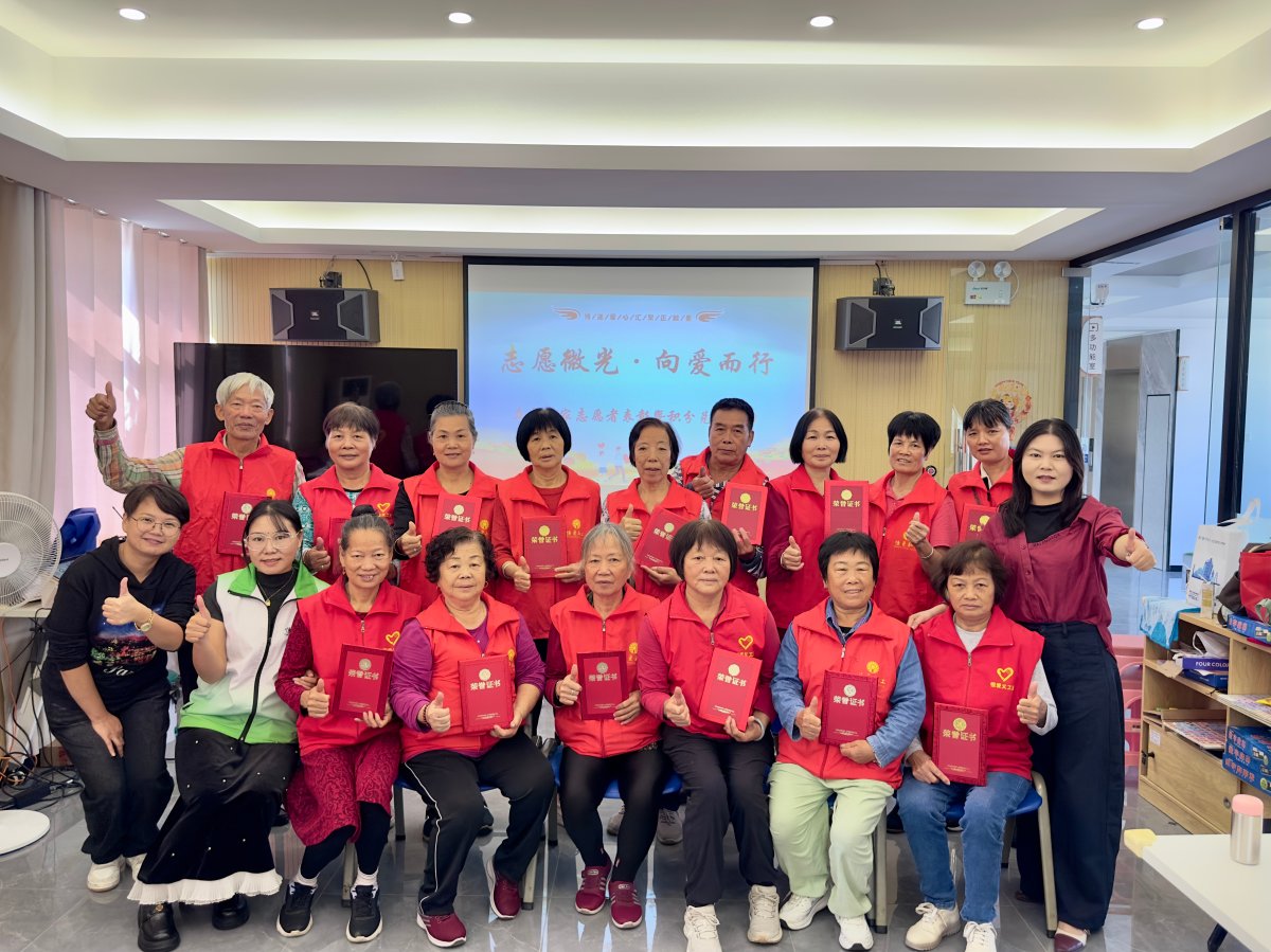 近日,平沙镇立新社区在社区居家养老服务站开展“志愿微光·向爱而行”志愿者表彰暨积分兑换活动,共表彰19名志愿者。活动表彰了“银龄互助”志愿团队中个人累计积分50分及以上的19名志愿者,为他们颁发“年度优秀志愿者”荣誉证书。