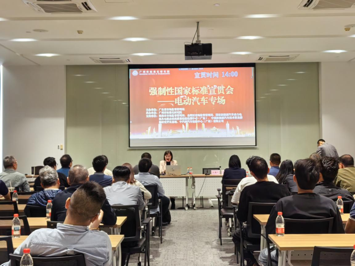 为深入贯彻国家新能源汽车产业发展决策部署,充分发挥金湾区新能源汽车产业结构优势,推动全市新能源汽车产业高质量发展,11月14日,电动汽车强制性国家标准宣贯培训在金湾区市民服务中心举办。本次培训由广东省市场监管局主办,珠海市市场监管局、金湾区市场监管局、国家新能源汽车质检中心、广州市标准化研究院等单位联合承办,吸引了全市新能源汽车生产、销售、充电桩制造等相关企业负责人及技术骨干50多人现场参会,同时通过线上平台向全省市场监管部门及相关企业同步直播。