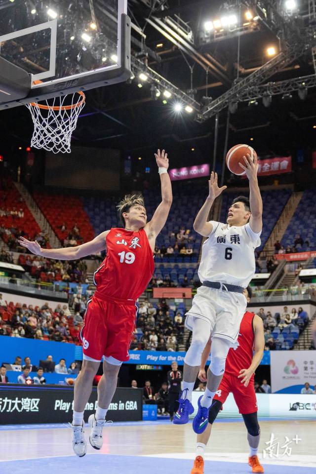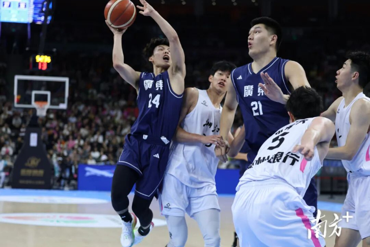 但广东队没有放弃,他们冷静分析场上局势,凭借默契多次在赛场上打出漂亮的配合。杨溢快速突破山东的防守,将球传给马明坤、袁照耀之后,自己又迅速跑到篮板下,实现“接力”得分;王浩然多次带球闪开山东队的严防死守,贡献了11投5中的三分命中率;于米提·赛达克底线厮杀,冷静应对山东队的防守策略,贡献出100%的两分球命中率。