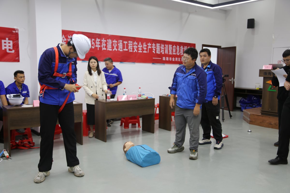 为进一步提升金湾区在建交通工程从业人员安全责任意识、应急处置能力和自救互救技能,构建系统完备、反应灵敏、协同高效的应急救援体系,11月18日,金湾区交通运输局结合消防宣传月活动主题,举办在建交通工程应急救援竞赛。
