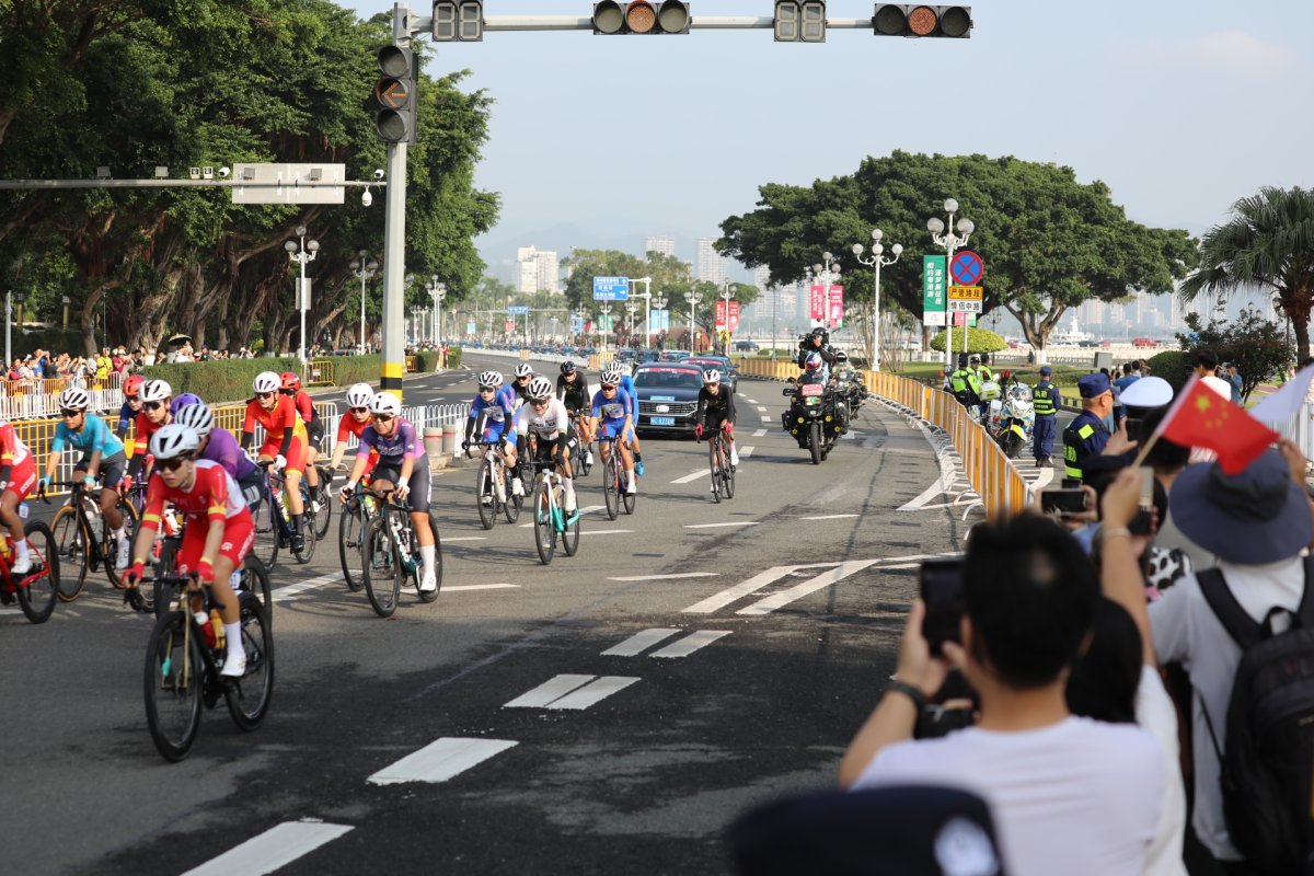 文明之风洋溢在赛场内外。在公路自行车赛现场,情侣路两旁众多珠海市民为运动员加油助威,全程保持整洁的赛道也见证着城市文明。
