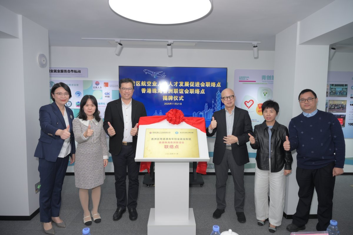 11月21日,香港珠海香洲联谊会联络点与大湾区航空业人力人才发展促进会联络点揭牌仪式,在香洲区粤港澳青年创业就业街区举行。两个联络点的设立,将进一步拓展香港与内地交流合作渠道,为港澳青年融入大湾区发展提供平台支撑。