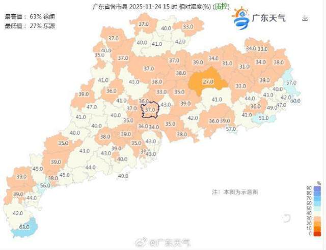 广东方面,晴燥持续,截至昨日15时,不少市县的湿度已经跌到40%以下了,最低的东源只有27%。