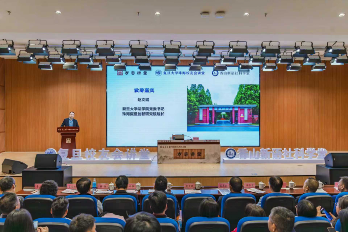 复旦大学法学院党委书记、珠海复旦创新研究院院长赵文斌在致辞中介绍了复旦大学及珠海复旦创新研究院的建设进展。他表示,研究院致力于深化澳珠琴协同合作,搭建跨区域合作桥梁,此次讲座正是推动澳珠琴文化交流的重要举措,有助于增进社会各界对澳门历史文化现代表达的理解,为人文湾区建设注入新活力。