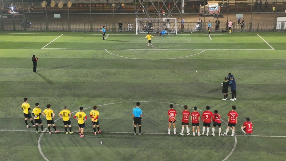 决赛当晚,新青工业园伟创力足球场灯火通明。身穿黄色队服的山河印刷队,与红色队服的好景社区海浪队展开冠军争夺。开场后双方攻防节奏紧凑,山河印刷队凭借娴熟传控寻找破门机会,海浪队则以反击制造威胁,常规时间内两队各入一球战至1:1平,比赛进入点球决胜阶段。最终山河印刷队以点球4:2、总比分5:3锁定胜局,捧得本次赛事斗门区级赛冠军奖杯。“今天队员的表现很好,可以说超水平发挥,到了决赛大家都是全力去拼搏的。”山河印刷队领队龚志启表示。