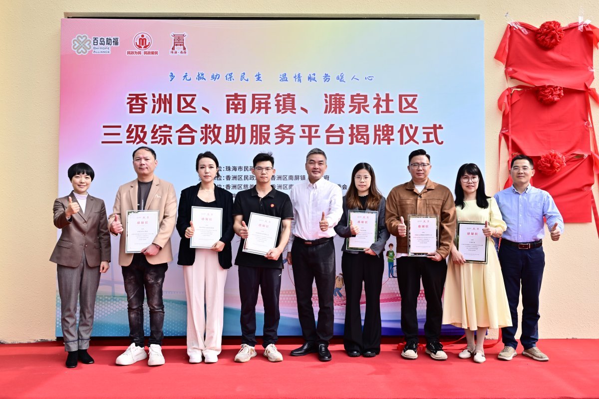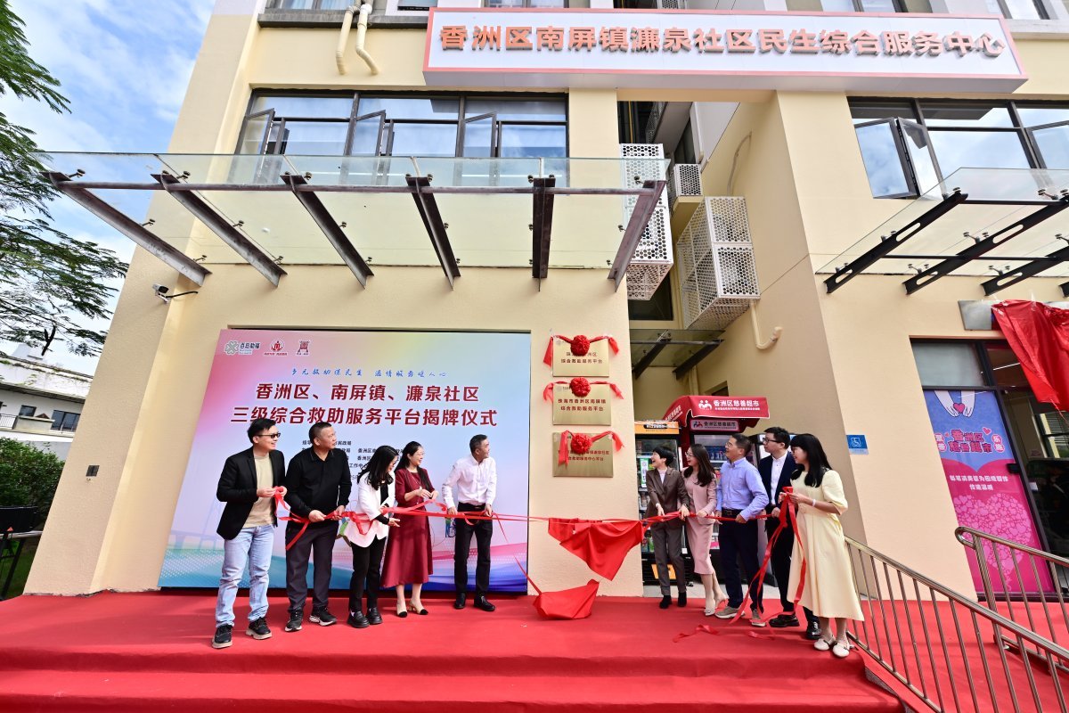 11月24日上午,香洲区、南屏镇、濂泉社区三级综合救助服务平台在保障房小区华发沁园民生综合服务中心正式揭牌启用。