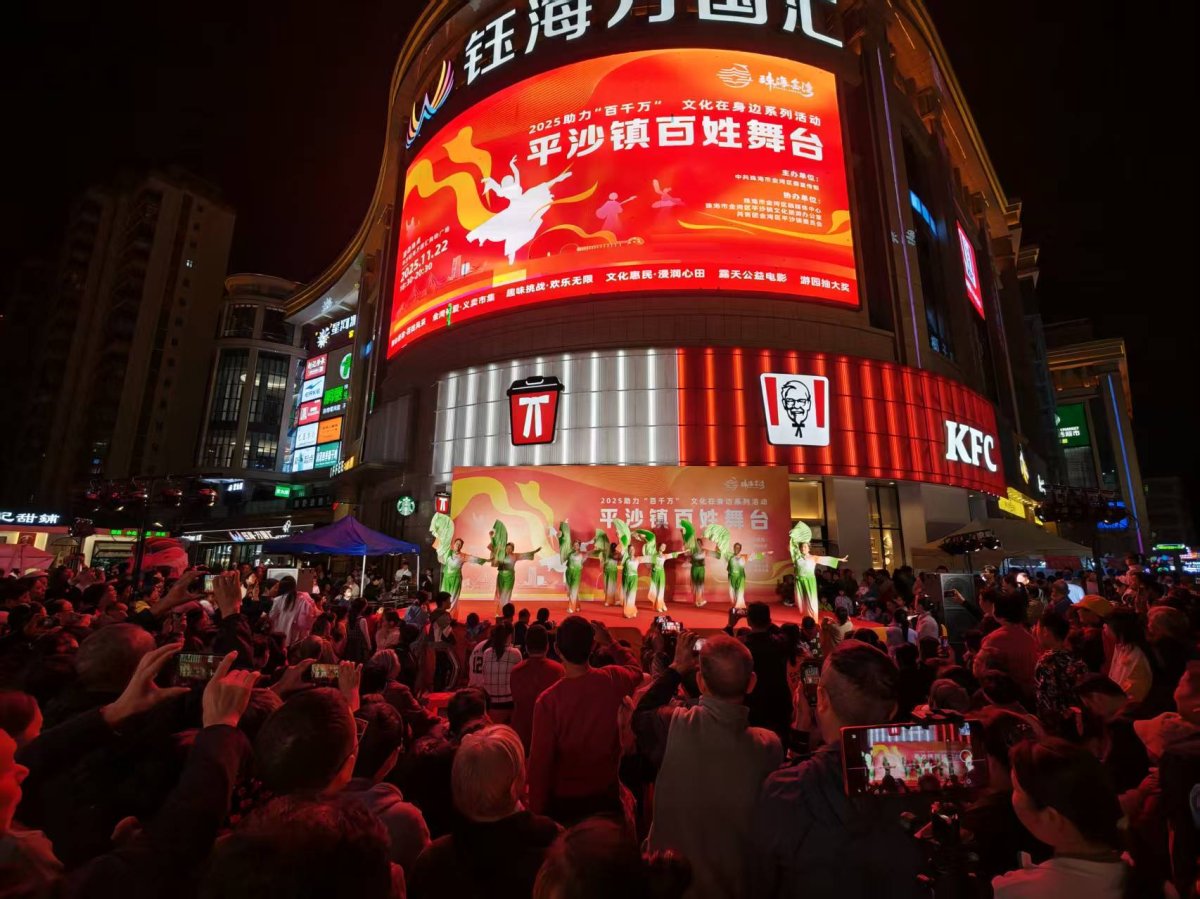 11月22日晚,助力“百千万”文化在身边系列活动之平沙镇百姓舞台在钰海万国汇购物广场(平沙店)热闹举行。此次活动由中共珠海市金湾区委宣传部主办,不仅设置了精彩演出、趣味挑战等环节,还引入了义卖市集、“文化漂流书屋”、露天公益电影,打造了一场“家门口”的文化公益盛宴。