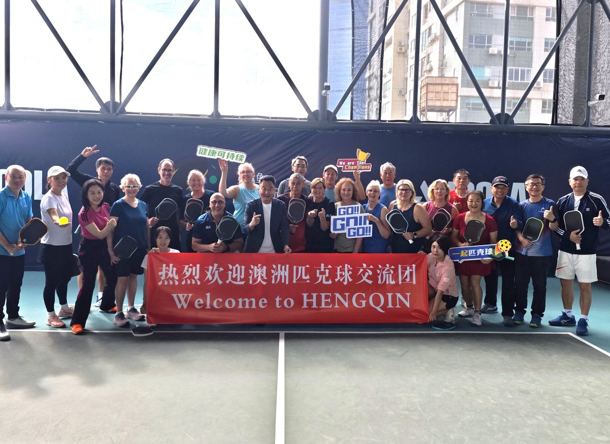近日,十余位澳大利亚匹克球爱好者飞越重洋,以球会友,在横琴粤澳深度合作区展开了一场匹克球友谊交流活动。