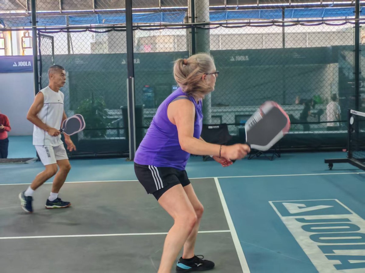 在横琴匹克球运动协会的组织下,澳大利亚代表团与琴澳两地匹克球爱好者展开多轮友谊交流赛。赛场上,精准的击球与默契的配合交织,欢呼声与掌声此起彼伏,不同肤色、不同语言的爱好者因共同的运动打破隔阂,生动诠释了“体育无国界”的交流真谛。“匹克球趣味性强、参与门槛低,是连接国际友人的绝佳纽带。”澳大利亚代表团团员Jo在赛后坦言。