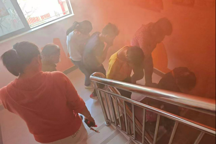 在消防知识讲解环节,教练系统介绍了灭火器、防毒面具、消防毯以及烟感报警器等常见消防设备的功能、适用场景及正确操作方法。通过实物展示与现场操作演示,将“预防为主,防消结合”的安全理念深植居民心中,使抽象的知识变得直观易懂。