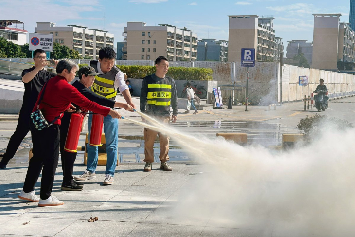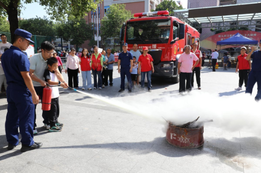 活动的高潮当属灭火器实操训练。在专业人员“提、拔、握、压”的细致指导下,居民们轮番上阵,亲身体验使用灭火器扑灭模拟火源。从理论知识到动手实践,居民们不仅熟悉了器械操作,更显著增强了应对初期火灾的信心与实战能力。