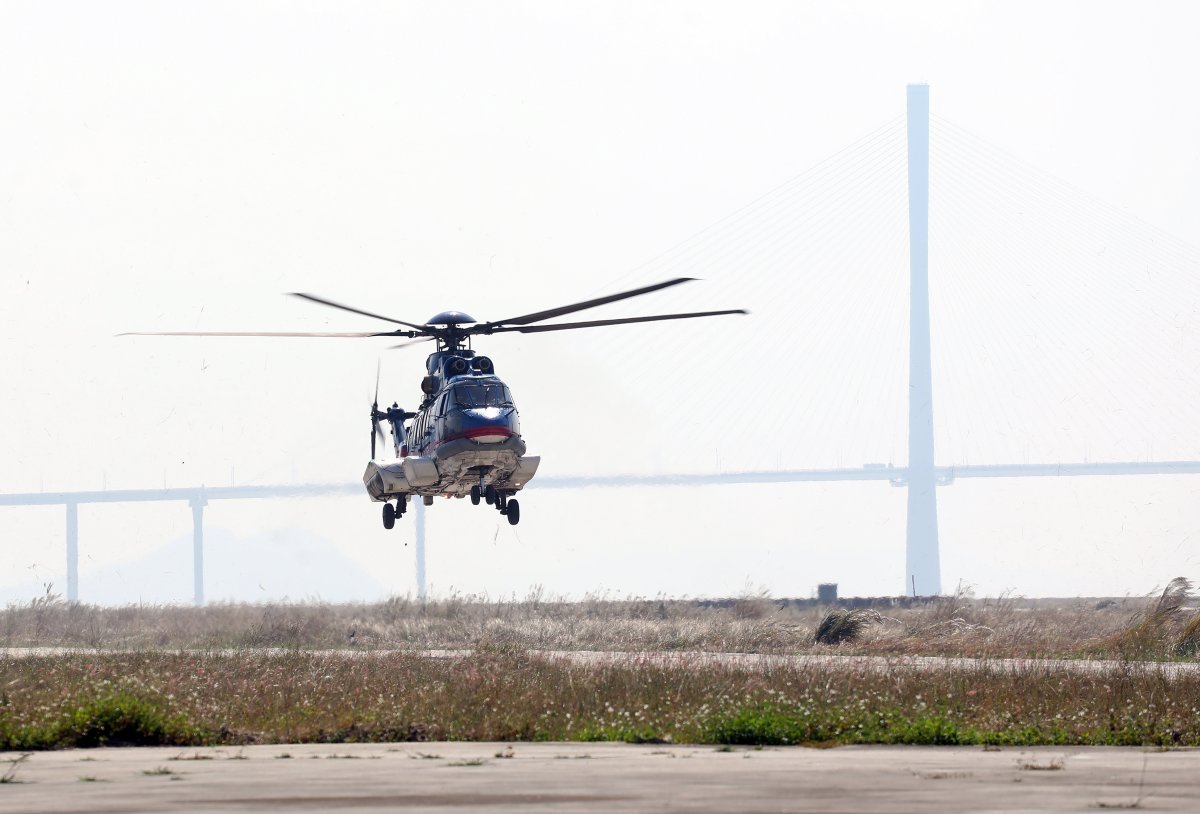 当天上午,由中信海直深圳分公司执飞的直升机从深圳南头机场飞往珠海星湾航空飞行营地,航程约150公里,单程飞行时间约40分钟,最大载客量为19人。直升机在抵达珠海海泉湾后,还在周边空域开展了低空游览演示。