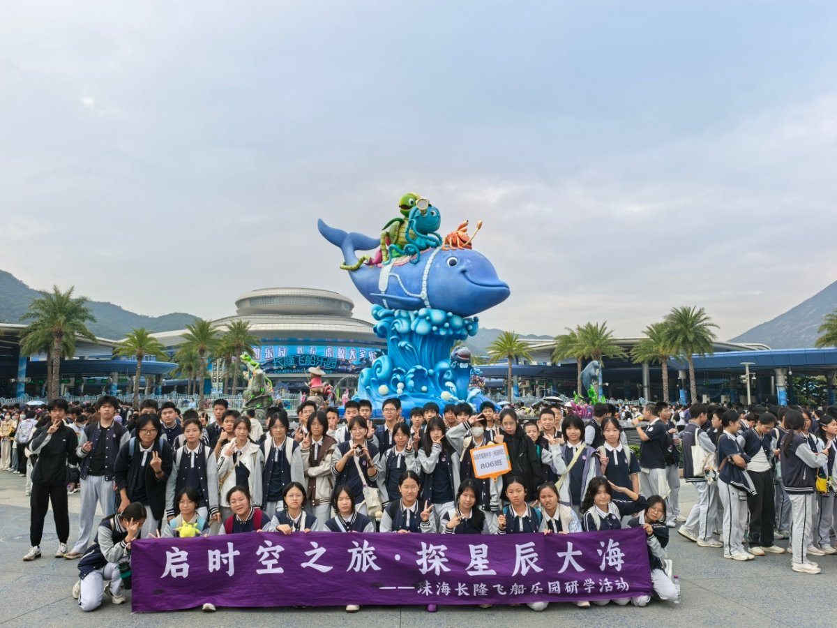 11 月 24 日,珠海市紫荆中学桃园校区的同学们奔赴长隆宇宙飞船,开启一场科技赋能的探索之旅。在前沿技术的加持下,大家沉浸式 “遨游” 星辰大海,近距离探究浩瀚海洋中的生物多样性,在奇妙的感官体验中解锁海洋知识、拓宽认知边界。从感受宇宙的广袤深邃,到领略生命的多样灵动,这场旅程不仅让同学们深化了对自然与宇宙的认知,更悄然播下环保的种子,进一步增强了保护海洋生物、守护生态家园的责任意识,也让对生命的敬畏与对宇宙的热爱在心中深深扎根。