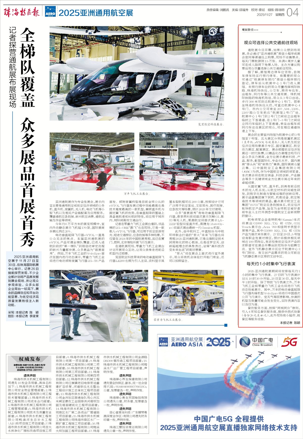 通航展今日开幕,如果公众想到场观展,务必通过“亚洲通航展”微信小程序或展会官网等渠道线上购票,现场不设售票点。每天门票数额限1.5万张。未满6周岁儿童可在成人陪同下免票入场。主办方建议购票后观众尽量选择公共交通前往现场。