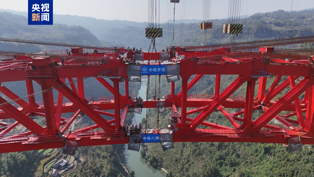 27日,主跨580米的重庆武隆至两江新区高速公路凤来大溪河特大桥钢桁拱顺利合龙,标志着大桥建设迎来万吨悬臂体系转换的重大节点。