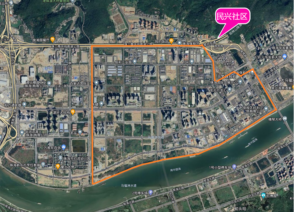 民兴社区与横琴粤澳深度合作区隔水相望,地理区位优势突出。其辖区范围东至南琴路,西至保西路,南起马骝洲水道,北至南琴路、保北路,辖区面积约5.8平方公里,常住居民约6600人。辖区内路网密集,涵盖宝锦路、宝泰路、宝仁路等多条主次干道,聚集了都会四季、琴澳传奇等住宅小区,以及利是达星际广场、龙光玖龙汇、星汉科技园等商业、办公项目,现有企业约1700家。